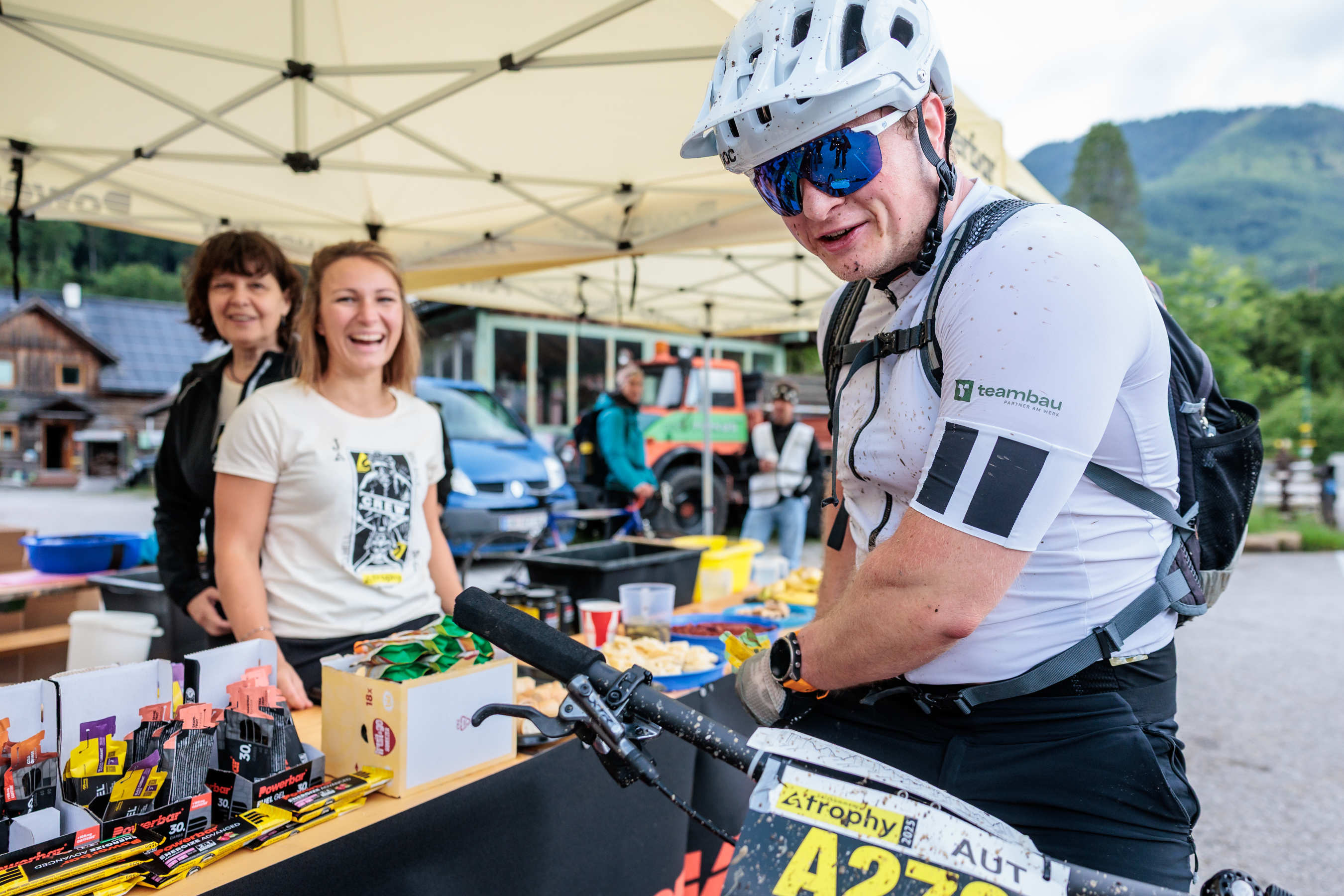 The refreshment stations along the track offer bananas, melons, dried fruit, nuts, bread with hard sausage and cheese, lard sandwiches, salt, cookies and waffles, fruit&go SQUEEZER, Ausseer gingerbread, cakes, water, Powerbar IsoActive, Coca-Cola, Pago fruit juices and Red Bull with water. Self-catering only at the assistance points (AP) marked in the course map.